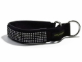 大胆にストーンがあしらわれたAMOKEN社のハーフチョークカラー(スウェーデン製)。約4.5cmのワイドな首輪幅で、愛犬の首元を美しく飾ります。毛切れが少ないハーフチョークタイプであることに加え、首輪内側は柔らかく丈夫なフェイクレザーが使用されており、見た目だけではなく、機能的にも優れた犬用首輪に仕上がっています。4サイズ展開。中型犬~大型犬にぴったりの首輪です。